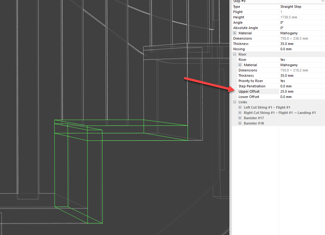 Hi, another seemingly unsolvable issue? I don’t know. In this attachment, you can see the tread/riser connection fully and partially connected. I want to mill and connect