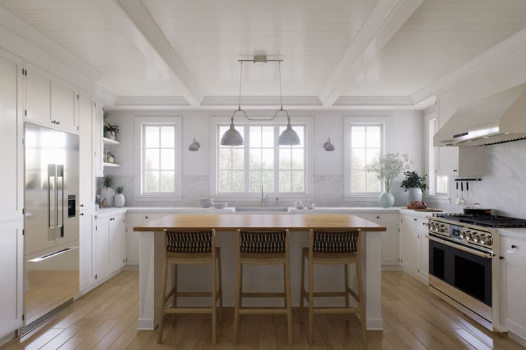 Less open feel. Three-walled designs can feel more enclosed than an L-shaped or single-wall kitchen, which might be a drawback for those seeking an ultra-open-plan feel or who wish to socialise with guests in an adjacent living area.